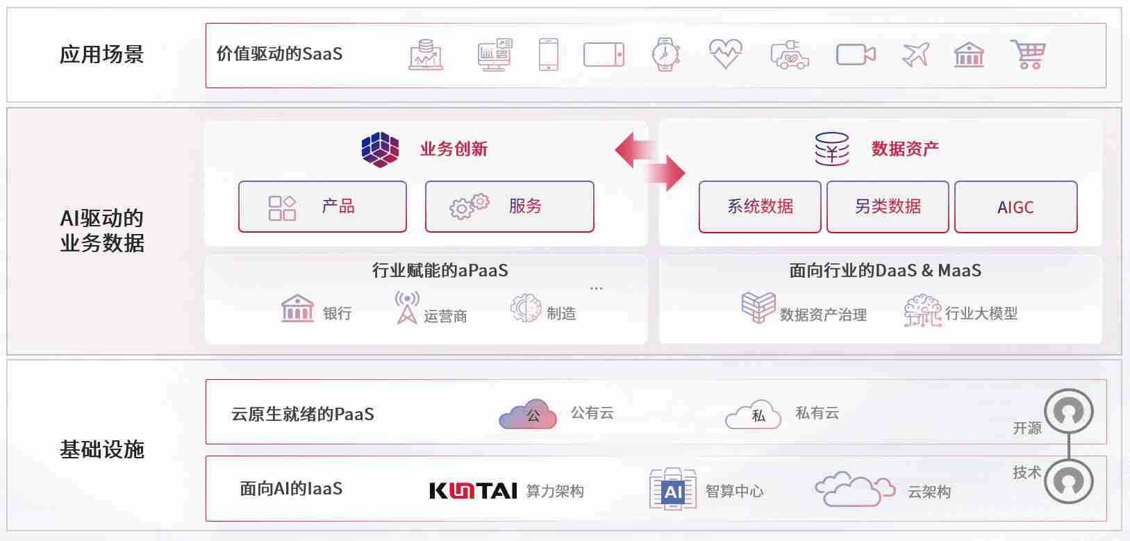 数字时代,,,,围绕企业数字化转型的关键要素,,,z6com尊龙数码开创性的提出数云融合战略和技术体系框架,,着力在云原生、、、、数字原生、、、AI原生和信创产业上架构产品和服务能力,,为处在不同数字化转型阶段的快消零售、、、、汽车、、、金融、、医疗、、、政企、、、、教育、、运营商等行业客户提供泛在的敏捷IT能力和融合的数据驱动能力,,构建跨界融合创新的数字业务场景和新业务模式,,,助力企业级客户建立面向未来的核心能力和竞争优势,,全面推动社会的数字化、、、、智能化转型升级。。。